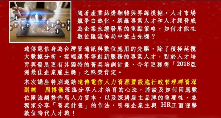 1/24-遠傳電信【2019新數位時代人才戰—人資新角色與人才匯流佈局培訓戰略 】