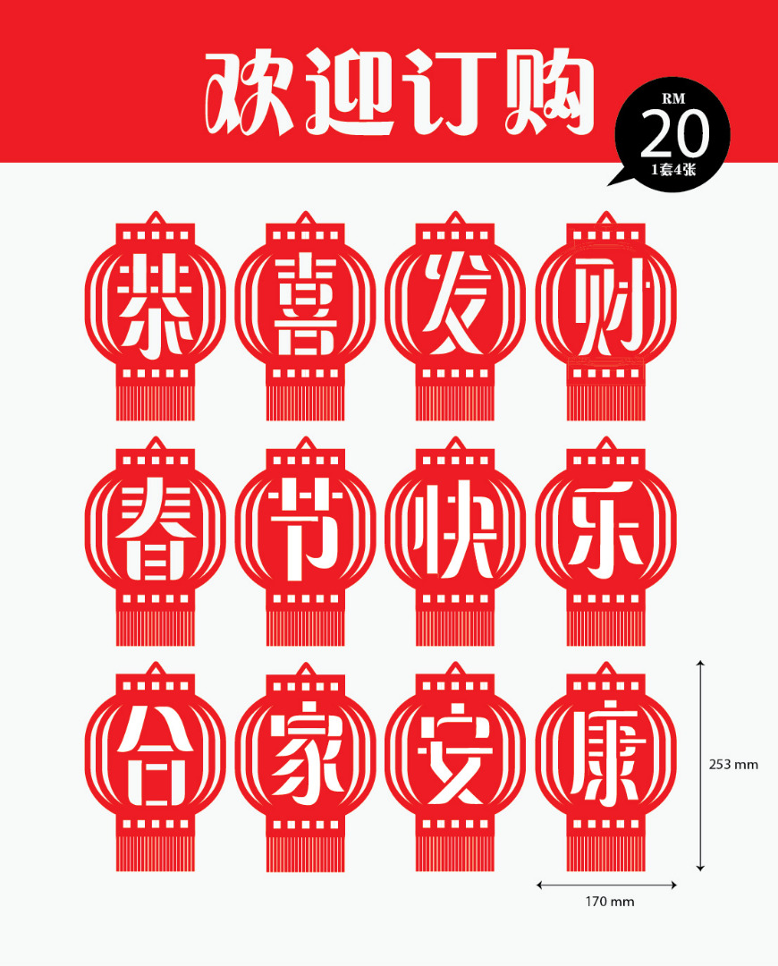 因纯手工剪纸,存货有限,敬请预先订购。