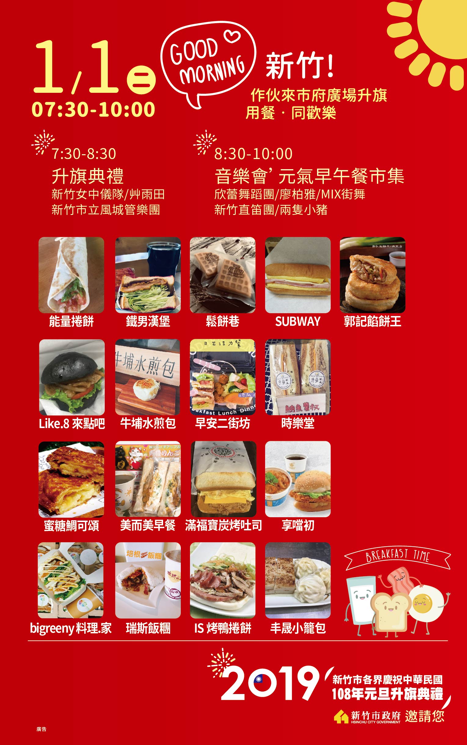 ▶️只要在此篇po文留言TAG好友們(#3位以上),相揪大家一起參加元旦升旗典禮,就有機會獲得免費的「元氣早餐兌換券」1張!