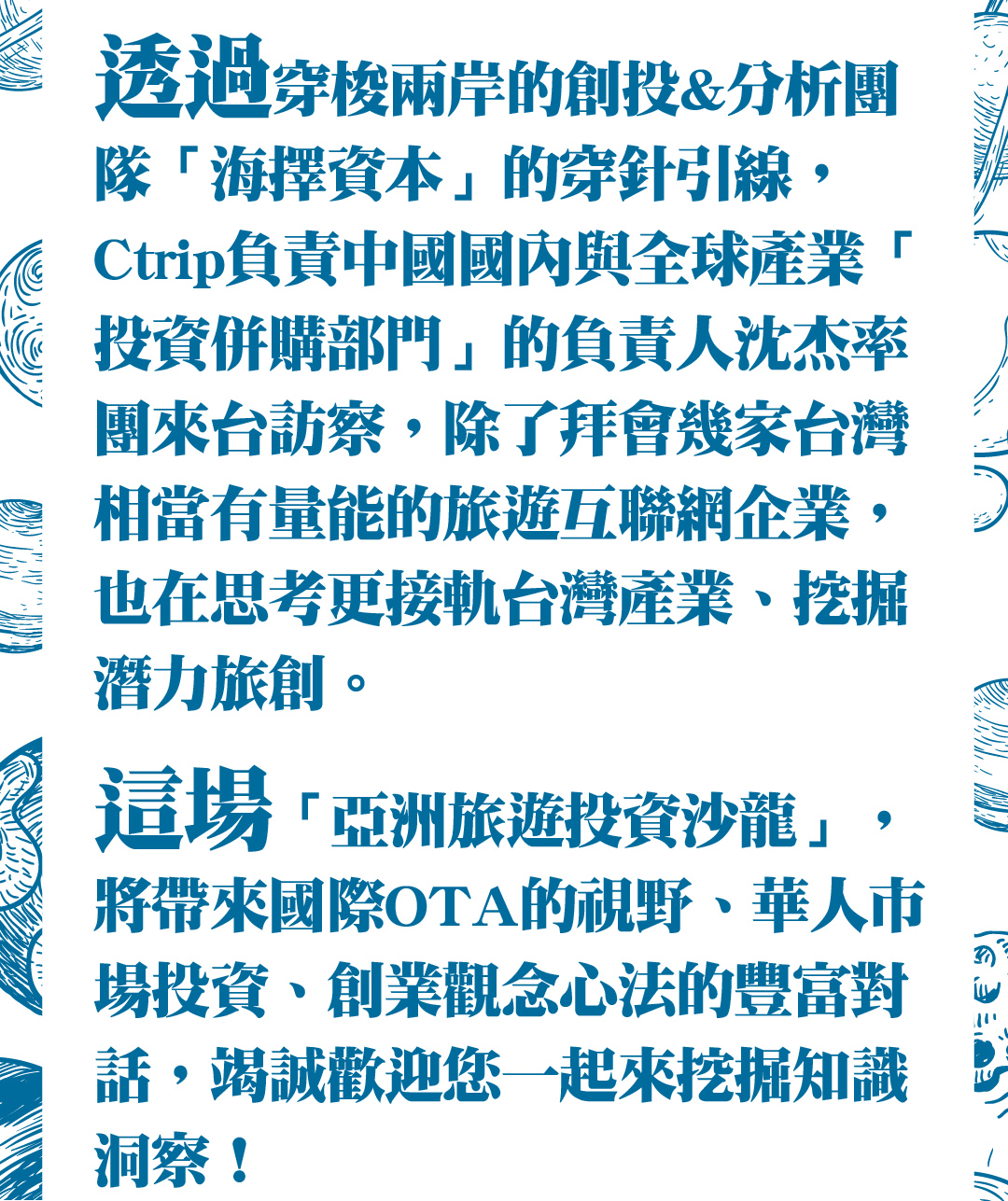 █ 💰亞洲旅遊投資沙龍💰 █ Ctrip集團全球投資負責人 沈杰、海擇資本 創始人 羅海資 ── 帶來亞太與兩岸旅遊投資創業的觀察洞見 與 估值設定心法;還有 台灣旅圖 執行長 周山姆 跨刀主持,創業者與投資者的快火對話,1月24日下午,RTM主辦的《旅遊投資沙龍》,帶您解鎖亞洲產業脈動!