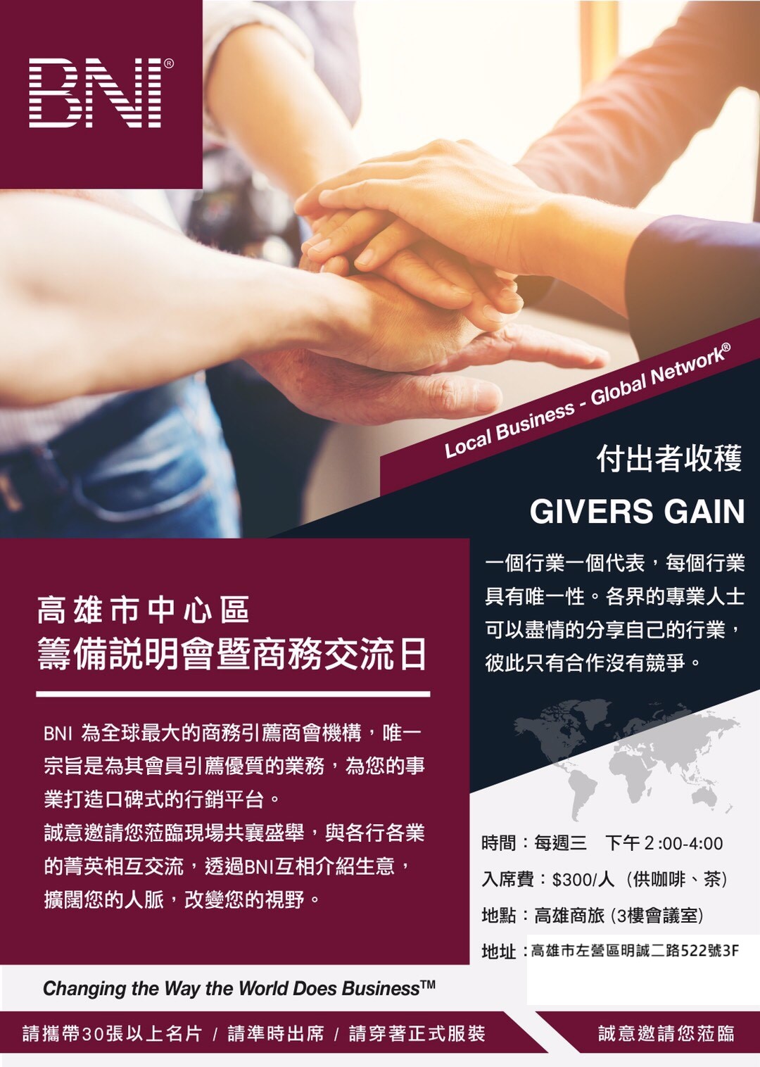 ↓連結到BNI高雄市中心區官網看更多訊息↓