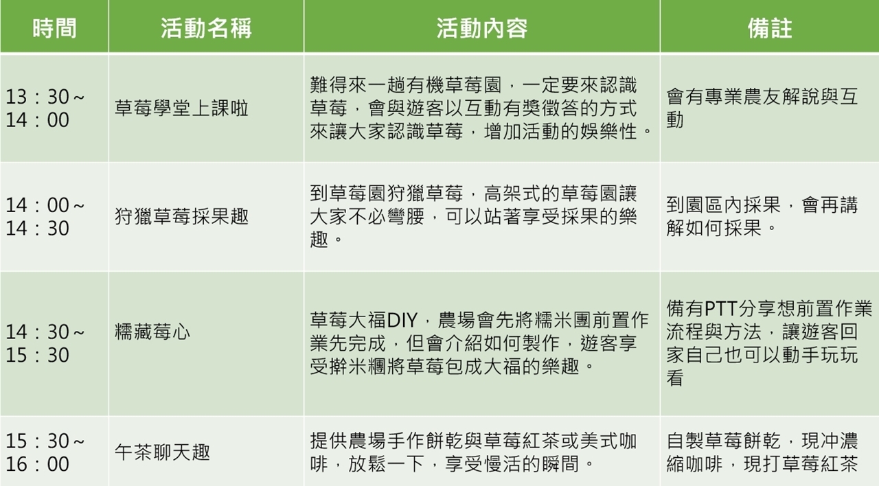 4. 票價皆含全程導覽費用、DIY材料費(一人皆可製作2個大福)、一套下午茶、採草莓NT.200元 (超過須另外付費)