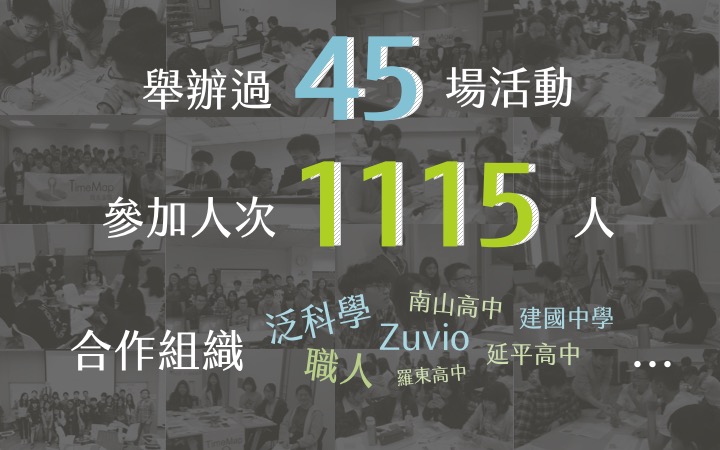- TimeMap團隊可能會在活動過程中進行側拍或側錄,做為TimeMap官方網站、粉專或企劃書使用,同時也可做為您申請大學時報名資料的素材!