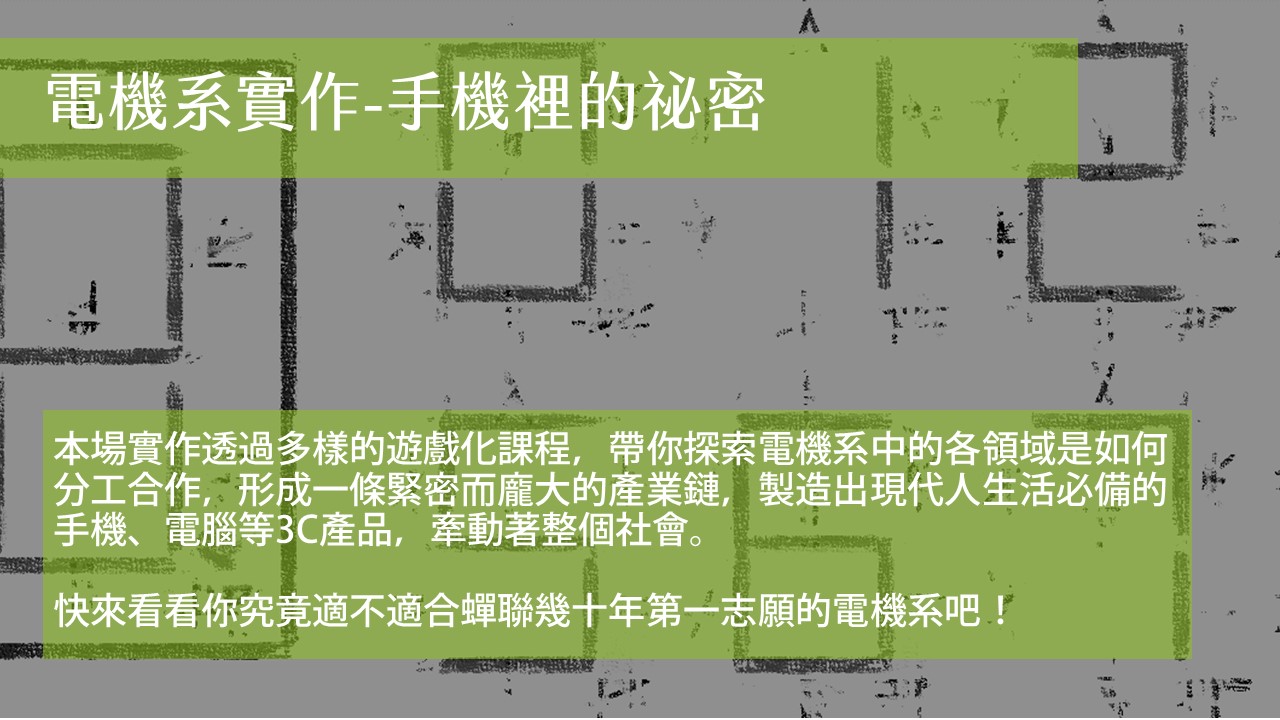 活動對象:高中生,或對資工、電機系有興趣的大學新鮮人