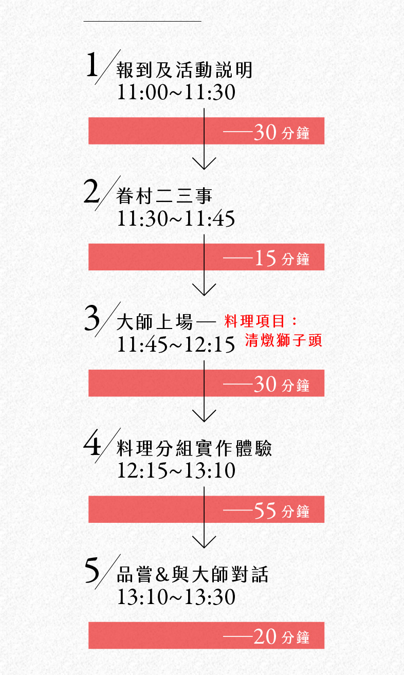 眷味料理實作體驗之七,將由烹飪眷村菜聞名的李璐老師來為我們傳授眷村圍爐必備經典菜-清燉獅子頭! 如何才能將獅子頭料理出肉汁四溢、唇齒留香,快來報名2/02的料理實作,親身來體驗,並且親口品嘗吧!