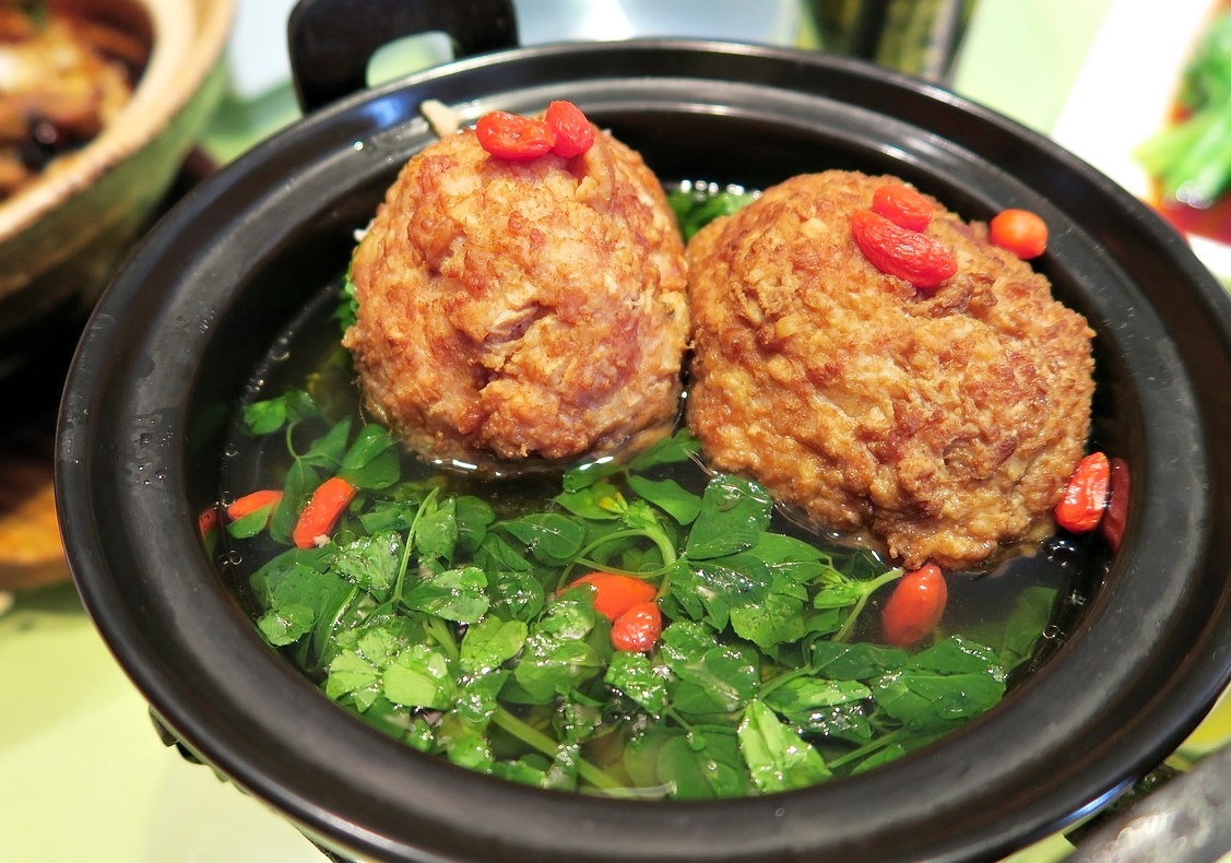 *獅子頭小常識 : 是淮揚菜系的一道傳統菜餚,傳說隋煬帝下江南,以揚州萬松山、金錢墩、象牙林、葵花崗4景為題做成了松鼠桂魚、金錢蝦餅、象芽雞條和葵花斬肉四道菜。