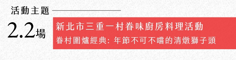 02月02日, 眷味料理實作體驗之第七道菜-清燉獅子頭,邀請您前來一同與我們用心來聆聽這時代的眷村飲食文化故事,並且親自實作體驗,料理出屬於自己的眷村味。