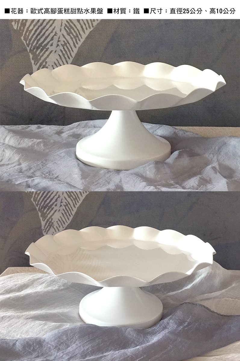 含花最大尺寸約62cm*62cm*40cm (鐵製高腳蛋糕盤直徑25cm*高10cm)。