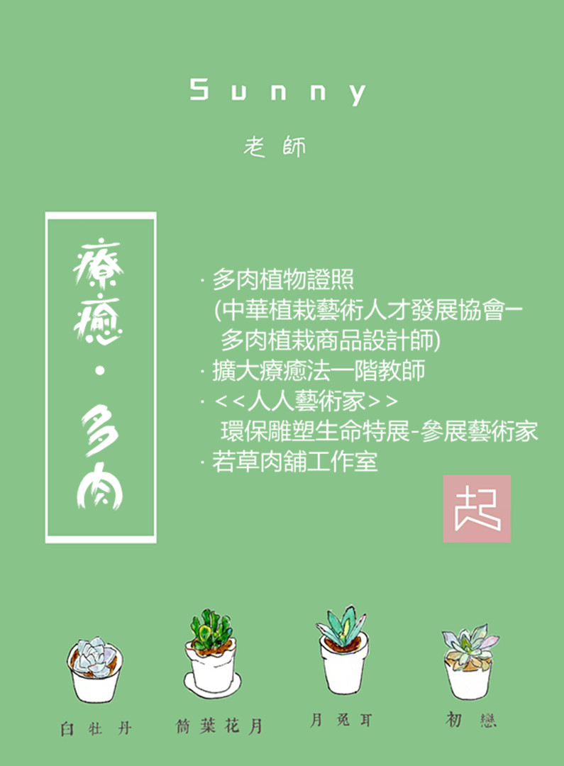 邀請到對多肉有‧炙熱情感‧的Sunny老師來為我們教學
