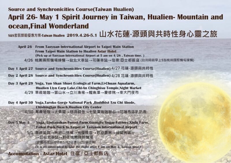 S&S套裝旅遊優惠方案-山水花蓮‧源頭與共時性身心靈之旅2019.4.26-5.1