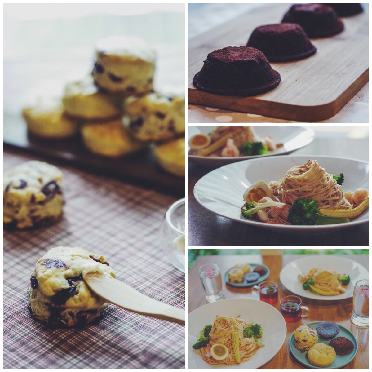 手作英式司康(蔓越梅2個,原味2個)附特製起士抹醬,鮮蝦天使冷麵佐溏心蛋2份,