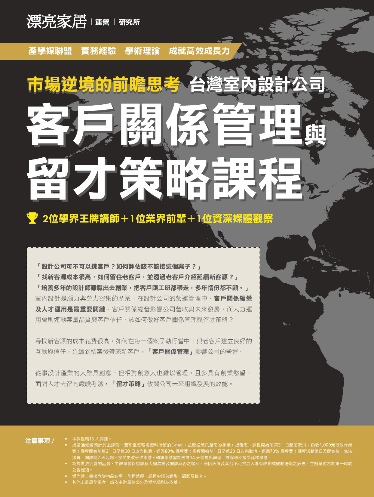 市場逆境的前瞻思考,台灣室內設計公司客戶關係管理與留才策略課程