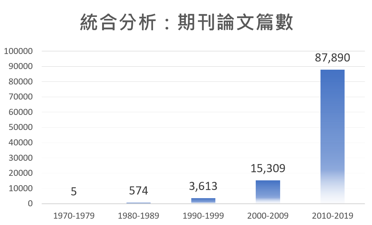 資料顯示,1999年以前,全球應用統合分析的期刊論文僅約4千篇;