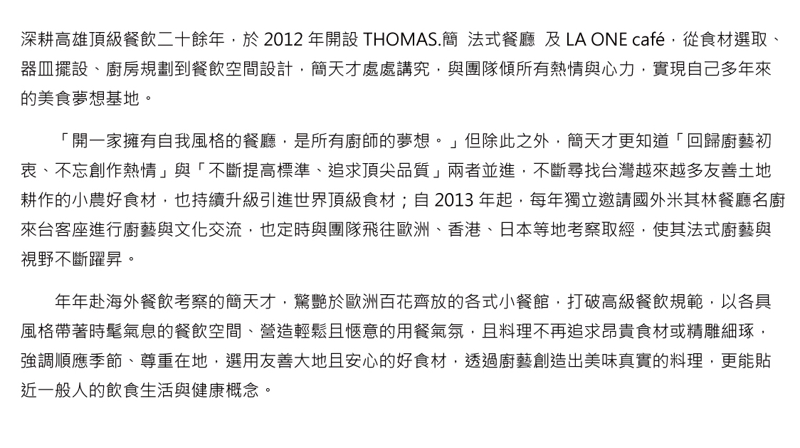 |Thomas Chien Restaurant FB 粉絲專頁|
