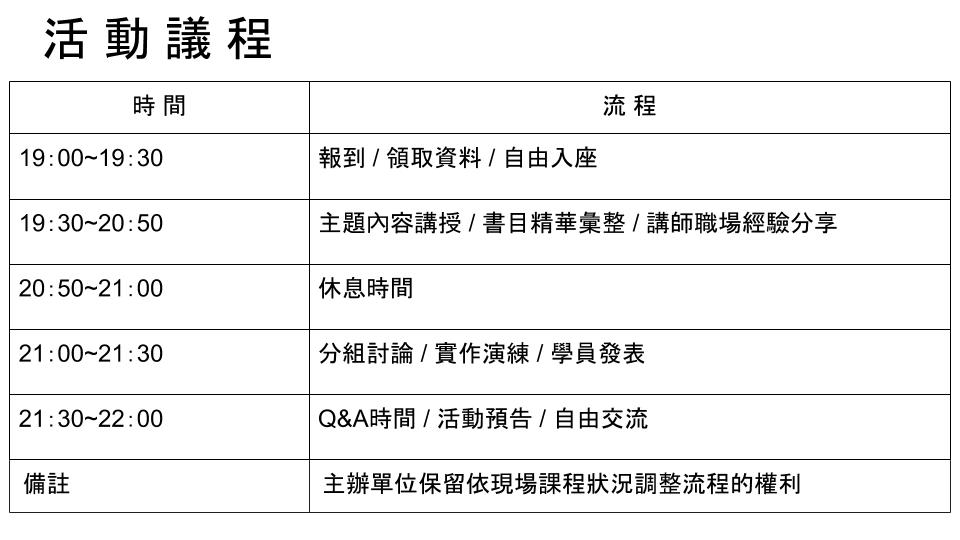 2. 成功報名者於參加活動時,不須另外帶本參考書目出席