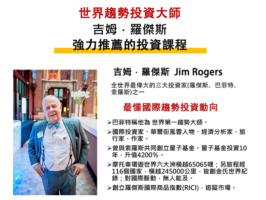 【這是一堂偉大投資家 吉姆·羅傑斯 強力推薦的投資課程】