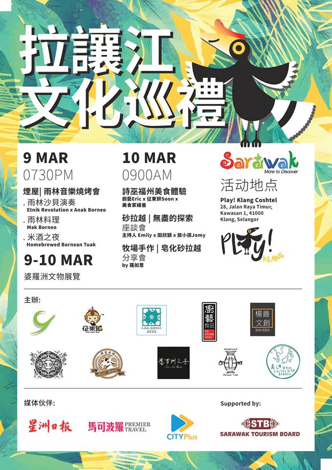 Play! Klang x 銘城旅遊 Greatown Travel x 詩巫好時光 x 走進婆羅洲 Into the Wild Borneo x 慕娘 Mak Borneo x 廚藝 The Kitchen Food x 征東餅 x Homebrewed Bornean Tuak x 鄭家牧場TYC Goat & Livestock