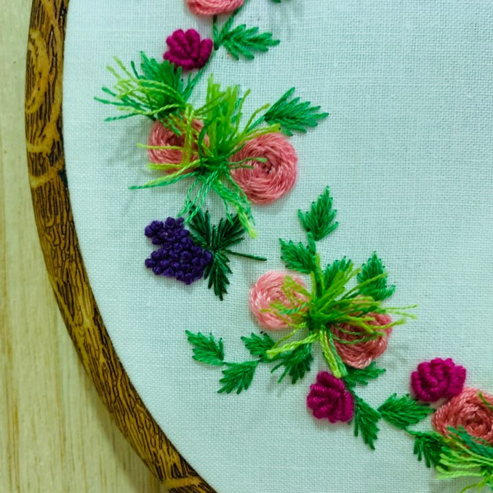 課程內容:從基礎的穿針、認識線材、刺繡原理開始起,學習直線繡、葉形繡、回針繡、法式結粒繡、蛛網玫瑰繡、捲線玫瑰繡、斯麥納繡等等針法。
