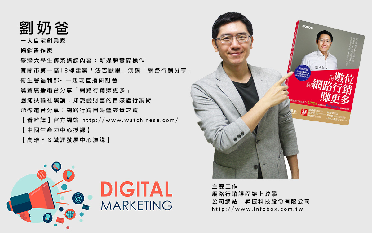 在現今競爭白熱化的世代中,要如何精準地抓住趨勢,是我們必須學習的課題!許多我們熟知的部落客、Youtuber藉著網路熱浪成為新一代崛起的紅人與微創業者,透過網路的行銷與經營方式,成功建立個人品牌,打破傳統的資本社會的工作模式。
