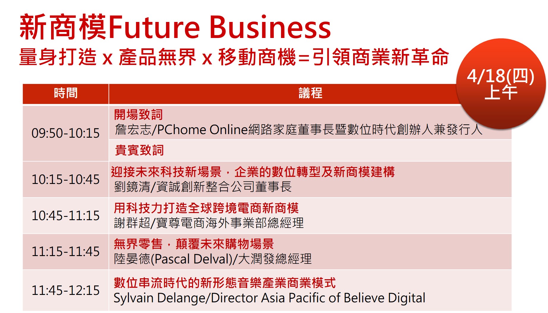 Future Commerce 未來商務趨勢論壇由數位時代長期觀察產業新趨勢的觀點出發,從找尋新商業模式,並透過新科技解決問題,導入創新管理思維,進而創造消費者全新體驗, 並運用最潮行銷溝通技術及模式,全方位協助與會者探尋更多新可能、新機會、新市場,開創產業創新機會!