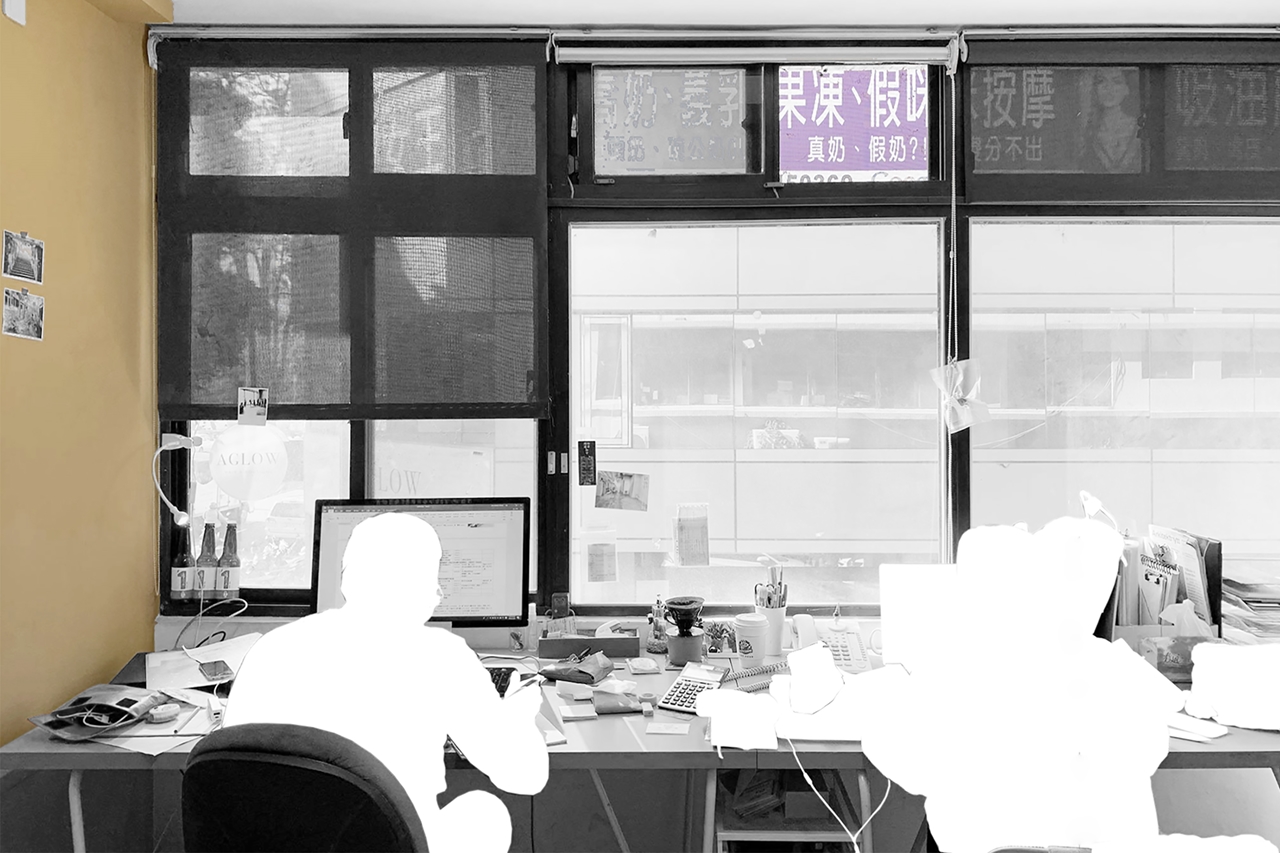 今年度的所展「我想做個好人」概念與以往不同,不只著重在各設計作品的結果展示,更重視設計發展過程中的各種階段、意念、掙扎。整個展場的呈現,如同對我們的工作狀態按下暫停,用一張張的停格畫面來傳達作品的企圖,而每一張停格畫面的背景正是人社一館B1的工作室。