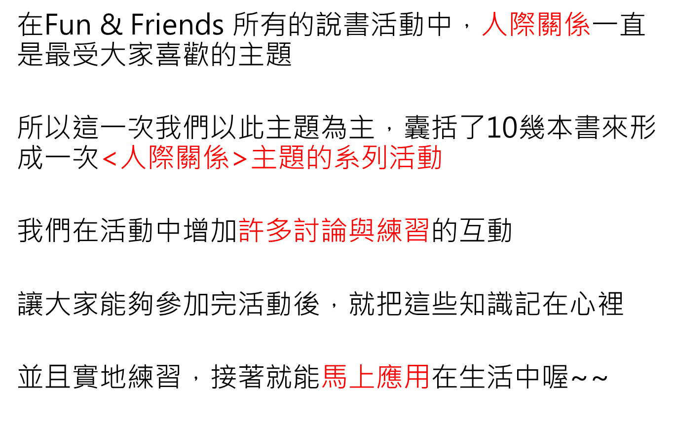 人際關係系列活動內容如下: