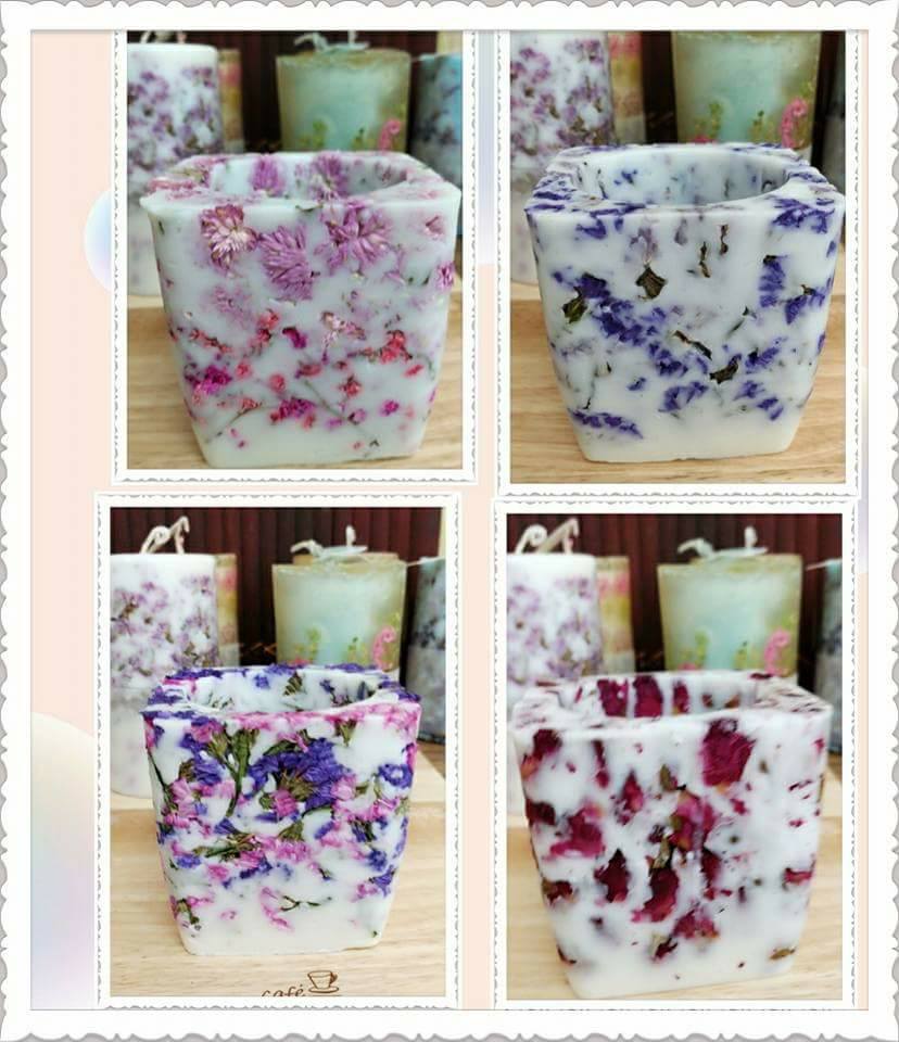 (2) 大豆蠟花花燭台 (成品直徑7公分,高 6 公分) 蠟燭重 150--200克