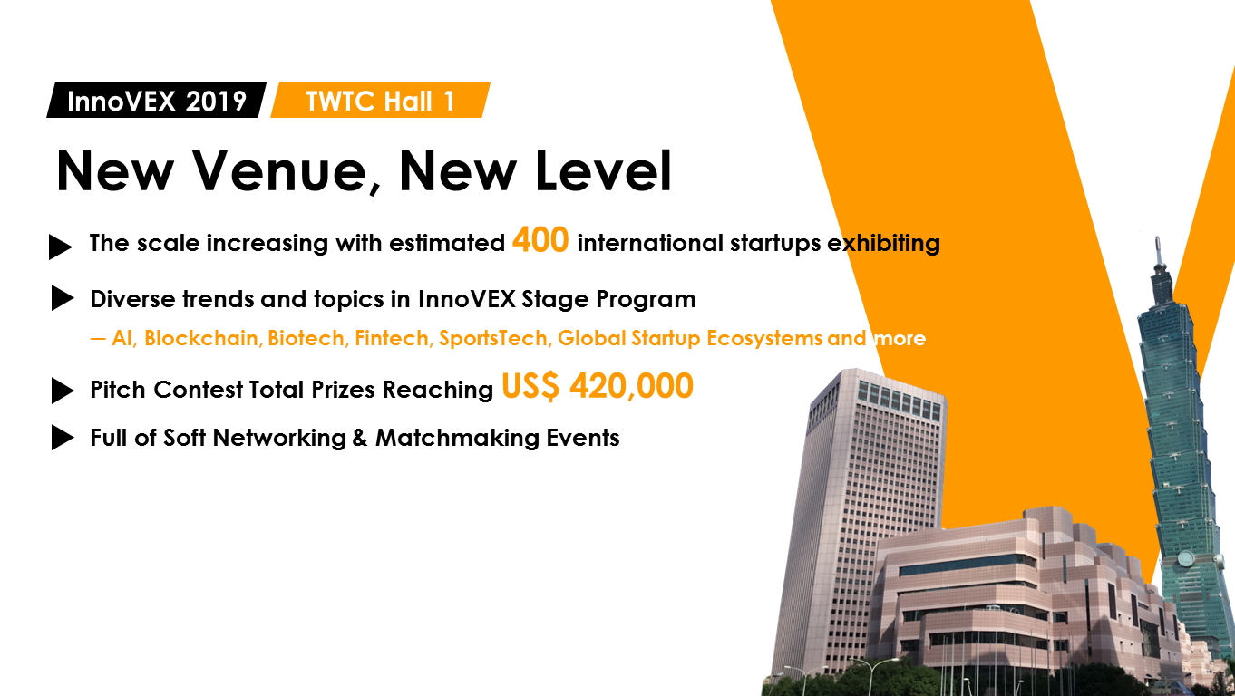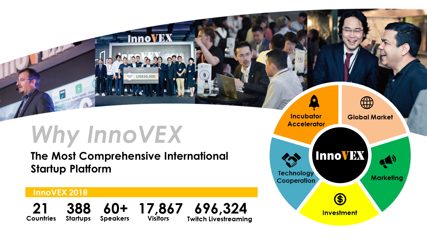 亞洲指標科技展COMPUTEX自2016年創立InnoVEX,打造科技新創與全球買主、投資者、製造商媒合的國際交流平台,吸引近400家國內外新創團隊及20,000名參觀者。 InnoVEX is an exhibit of COMPUTEX TAIPEI focused on startups to showcase innovative ideas, technological marvels, and investment exchanges.