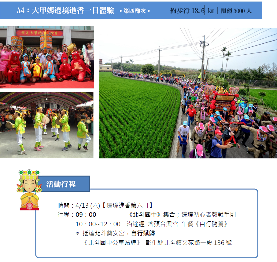 大肚火車站/北斗國中/雲林高鐵站/員林火車站,請依照每梯次活動內容指定地點集合