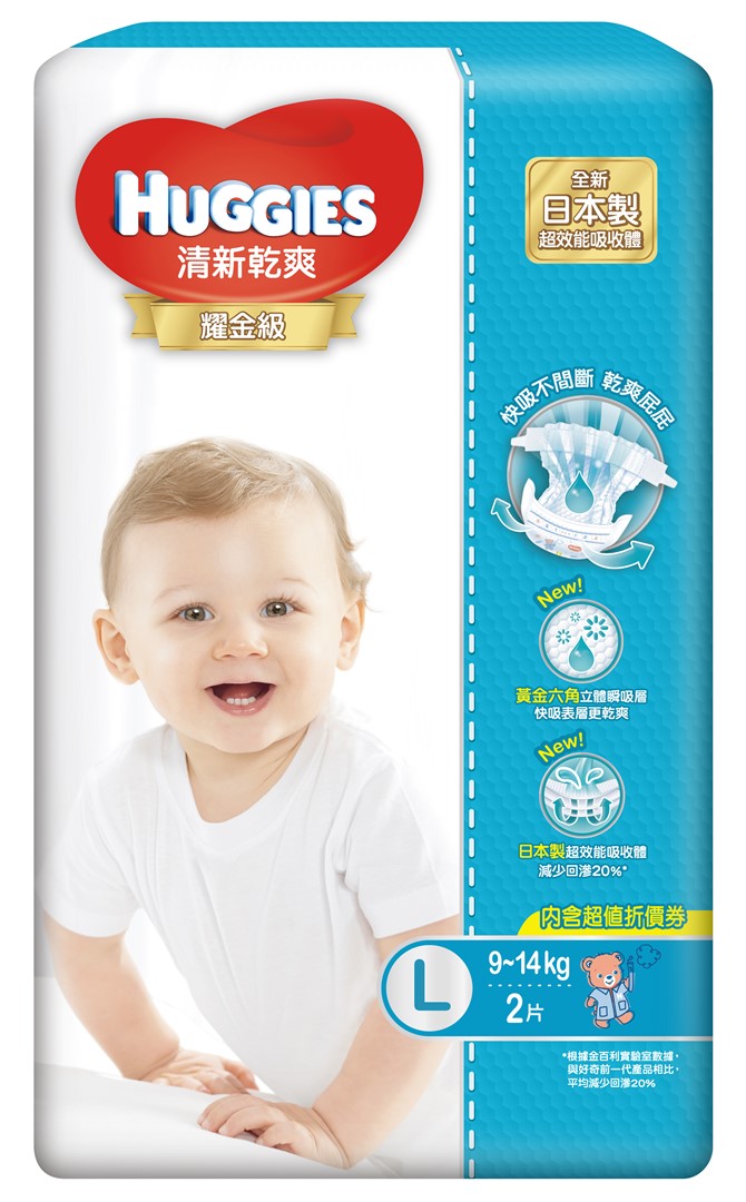 ▲好奇耀金級清新乾爽紙尿褲(L號2片)