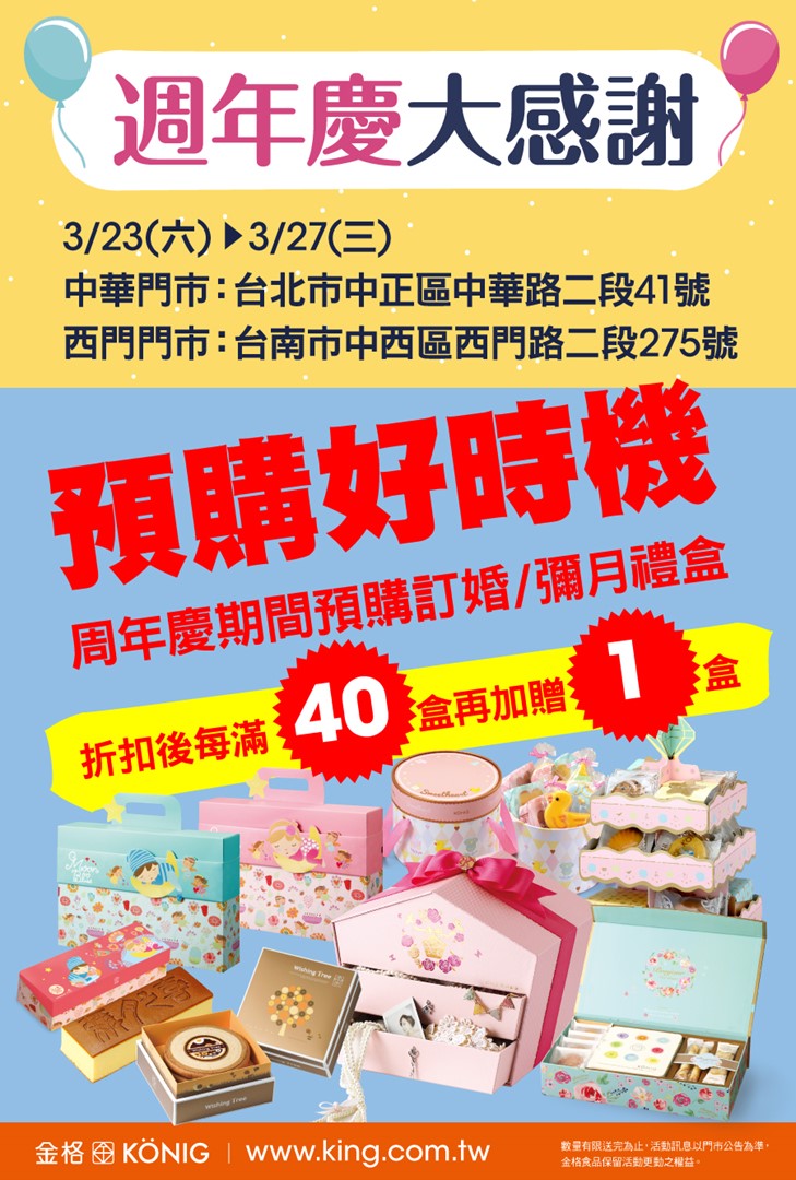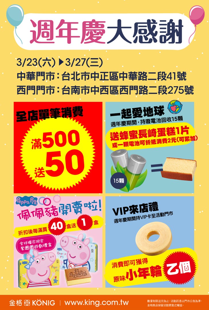 3.周年慶期間滿額贈送的50元抵用券於周年慶結束隔日起1個月內使用,滿200得使用1張,滿月/喜餅禮盒不列入滿額活動。