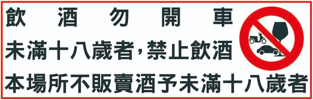 *未滿十八歲者禁止飲酒,禁止酒駕,飲酒過量,有害健康。