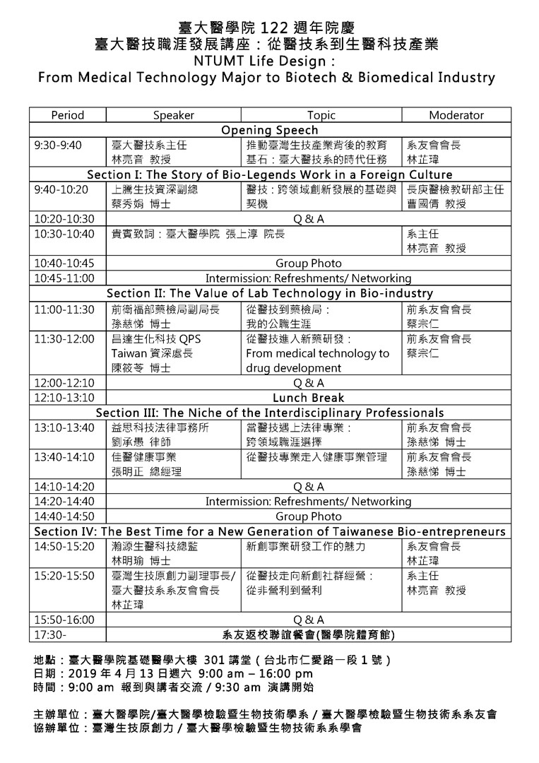 2019臺大醫技職涯發展講座:從醫技系到生醫科技產業