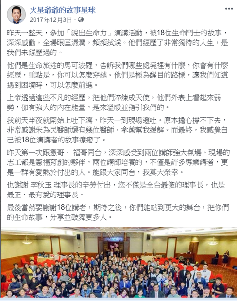 第3屆 說出生命力 評審 火星爺爺 心得文