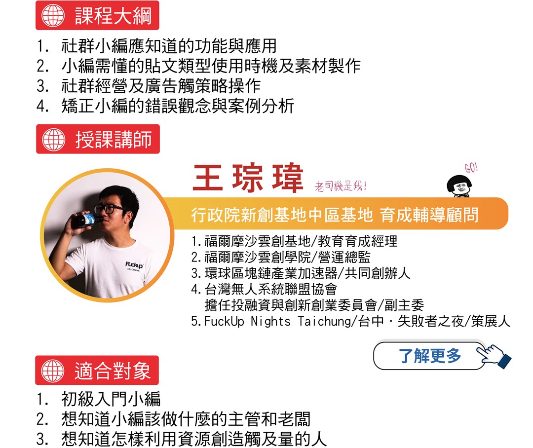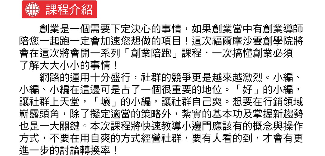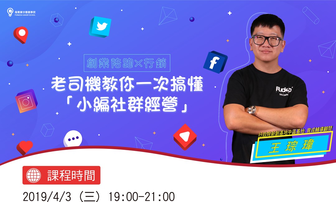 4/3 創業陪跑X行銷:老司機教你一次搞懂「小編社群經營」(平日速成班)