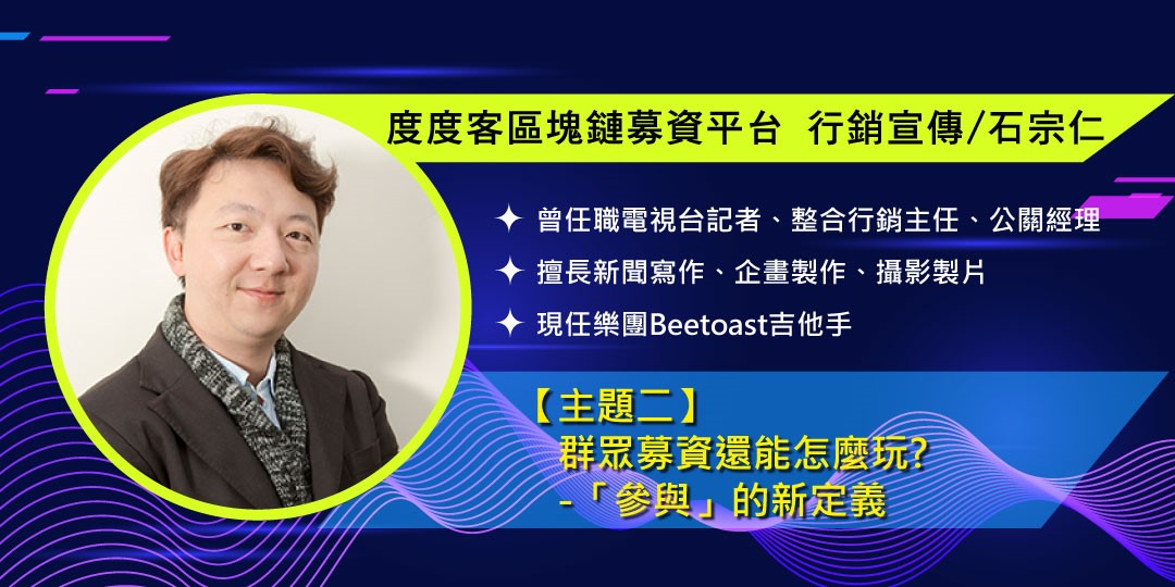 曾任職電視台記者、整合行銷主任、公關經理。目前任職度度客區塊鏈群眾募資平台,擅長新聞寫作、企畫製作、攝影製片、把複雜的事情簡單化。現任樂團Beetoast吉他手。