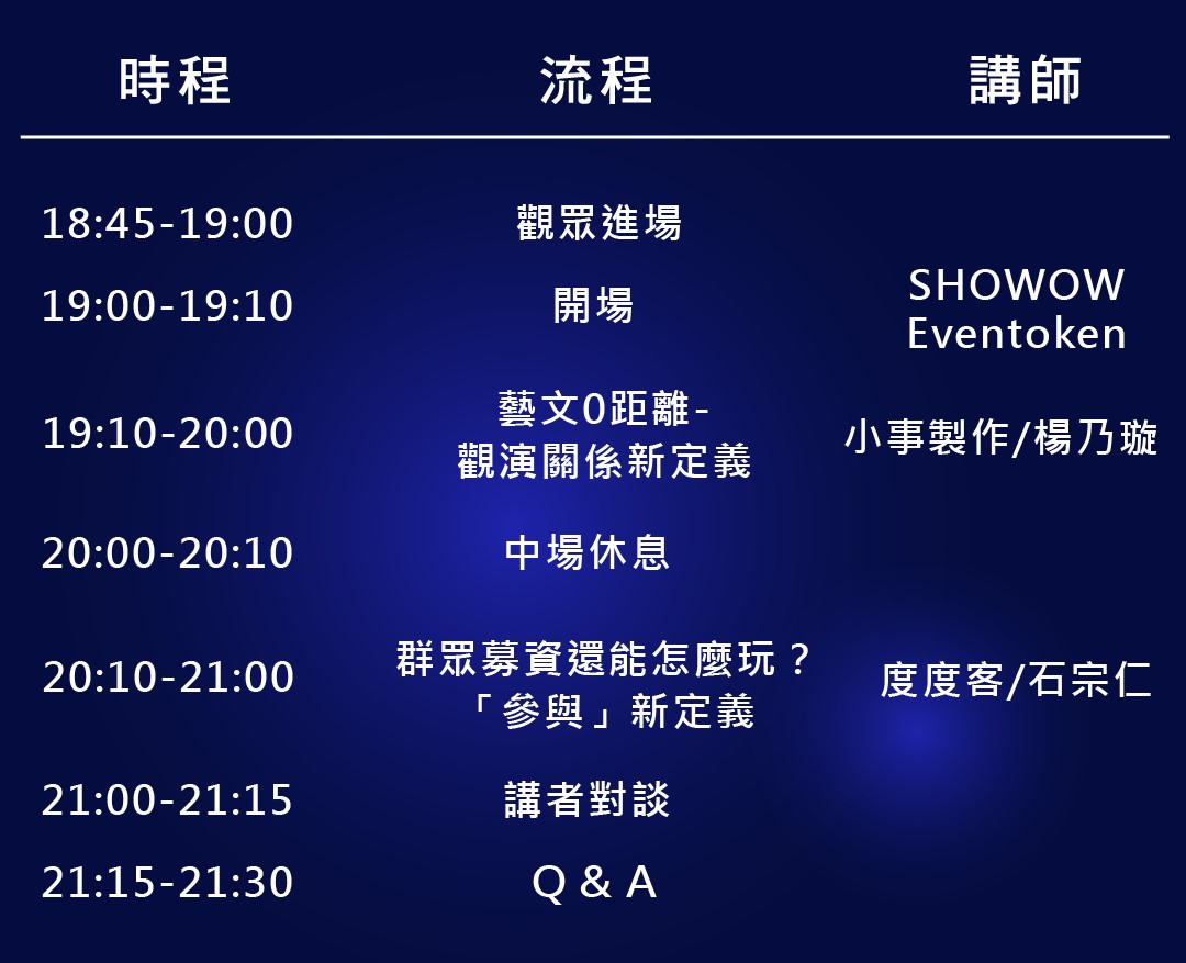 專注於表演行銷、表演品牌經營、產業趨勢觀察,不管你是表演工作者、表演團體、表演製作人、藝術行政行銷、或是對表演藝術推廣有興趣的人,SHOWOW表演人俱樂部隔月一聚、雙數月固定開講!