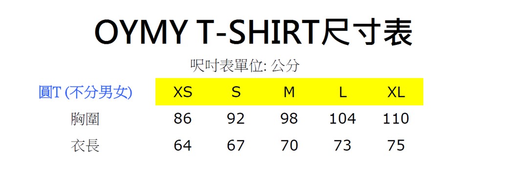 T恤尺寸表 (請於下頁報名表選擇尺寸,現場無法更換喔~)