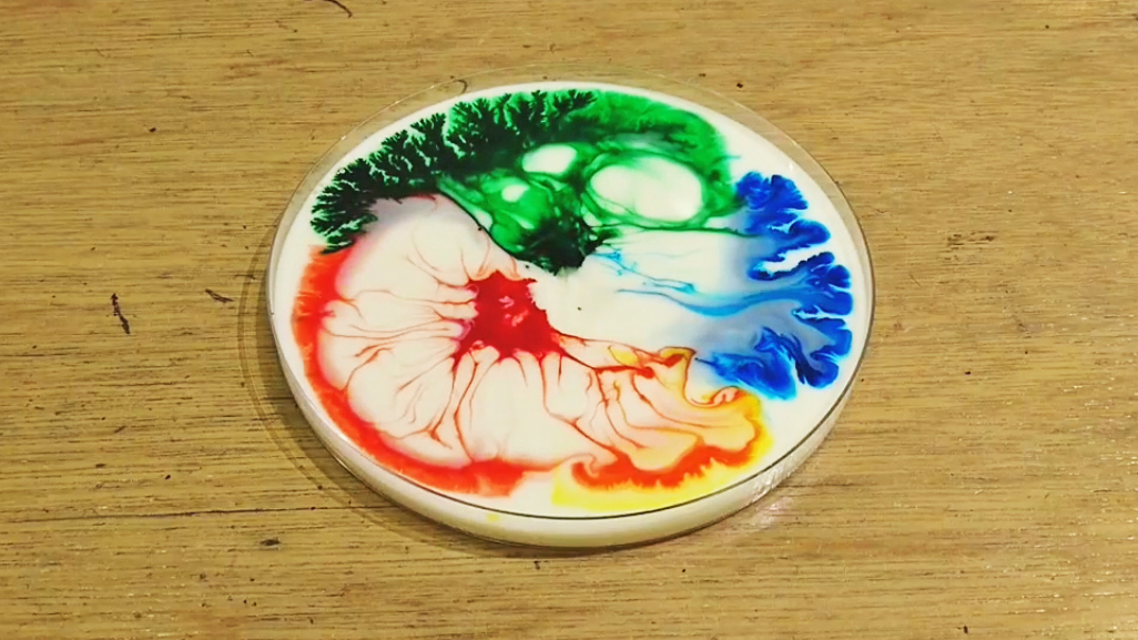 夢幻的彩虹雨實驗讓我們認識了油畫與水彩顏料的特性,然而,油與水究竟能不能成為一起手牽手的好朋友呢?人類發明了一種神奇的東西,就像是不可能的任務,讓這兩種特性互不相容的物質攜手共伴,甚至成為好麻吉,這次將運用家庭生活中隨處可見的神奇發明物,讓油水不分彼此,更讓各種顏色在容器中恣意的翻滾並創造前所未見的神奇色彩魔術。
