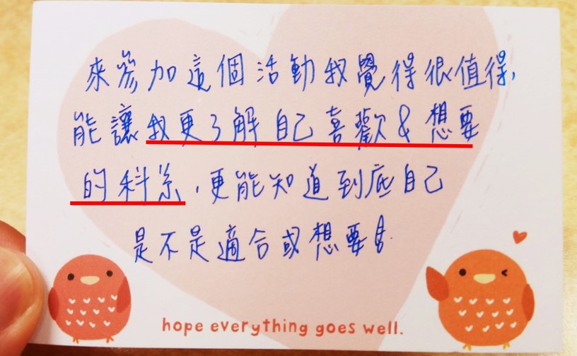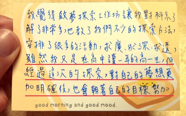 啟夢非常樂意將科系探索的方法提供給高中老師,將探索的工具與方法帶回學校裡。