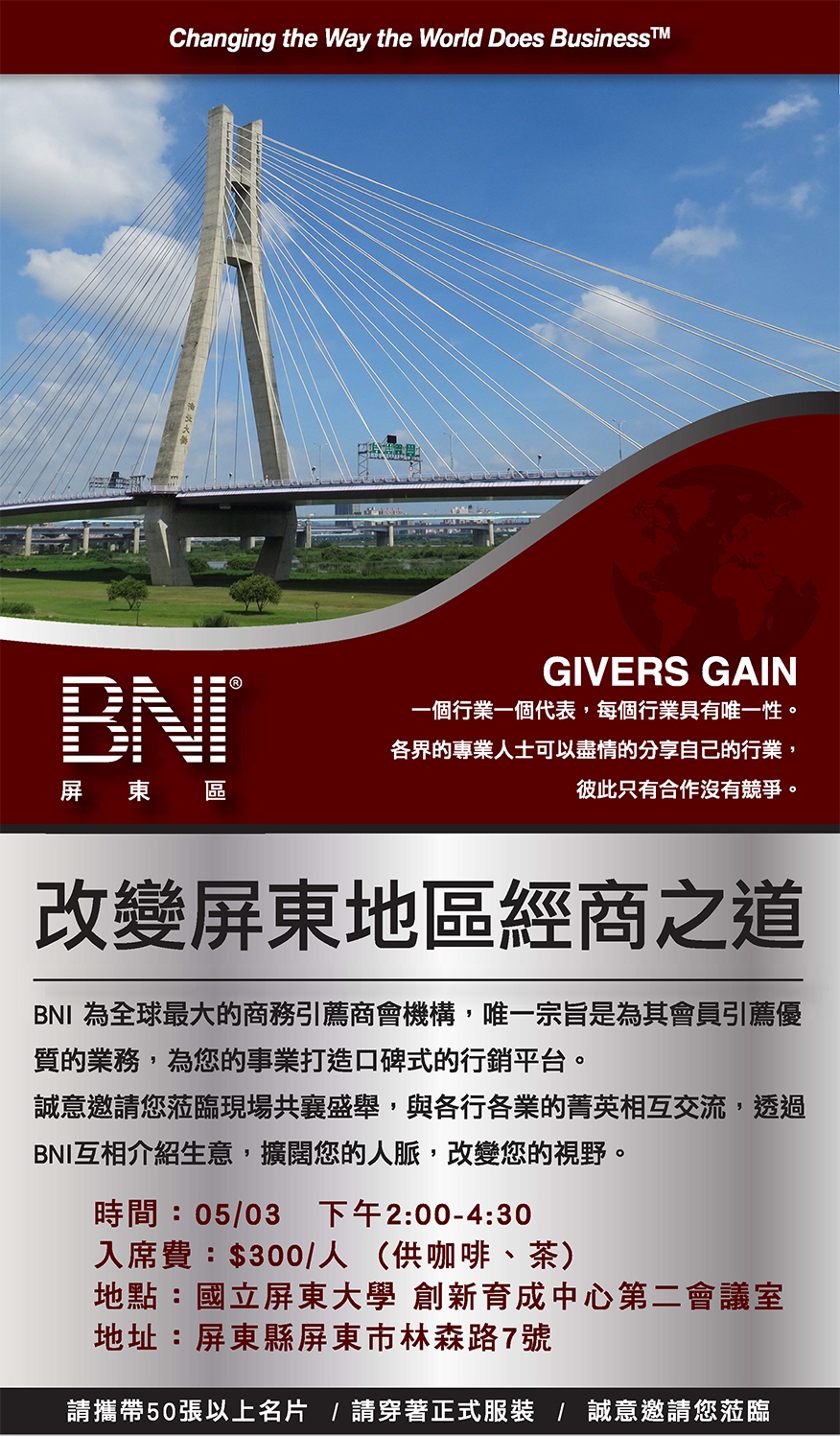 屏東BNI誠摯邀請在專業上獲得肯定並認同付出者收穫的您蒞臨商會,
