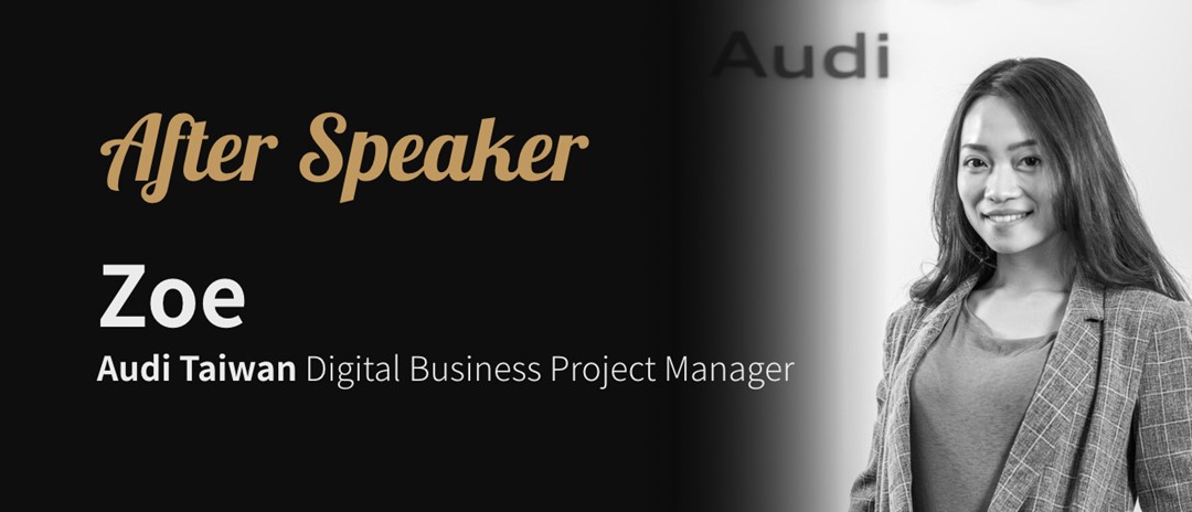 Zoe is a project manager of Audi Taiwan Digital Business and Dealer Network department, a function dedicating digital business development and new models in automotive industry. She is responsible for digital projects, identifies cross-industry innovation, addresses scouting criteria for startup, and fosters a smart mobility network in Taiwan. In 2018, she was responsible for the setup of the very first of Audi Innovation program from concept to execution, to position Taiwan as a source for sophisticated technology solutions. She is also in charge of introducing connected car functions to the market, consolidating market readiness, harmonizing business processes, and IT solutions. Prior to that, She firstly started Audi Taiwan with an APAC International Trainee Program and conducted the rotation in Audi headquarter, Germany. She has an MA in Communication Technology from National Chao Tung University and a visiting scholar in Media Psychology from Michigan State University in U.S, 2016.
