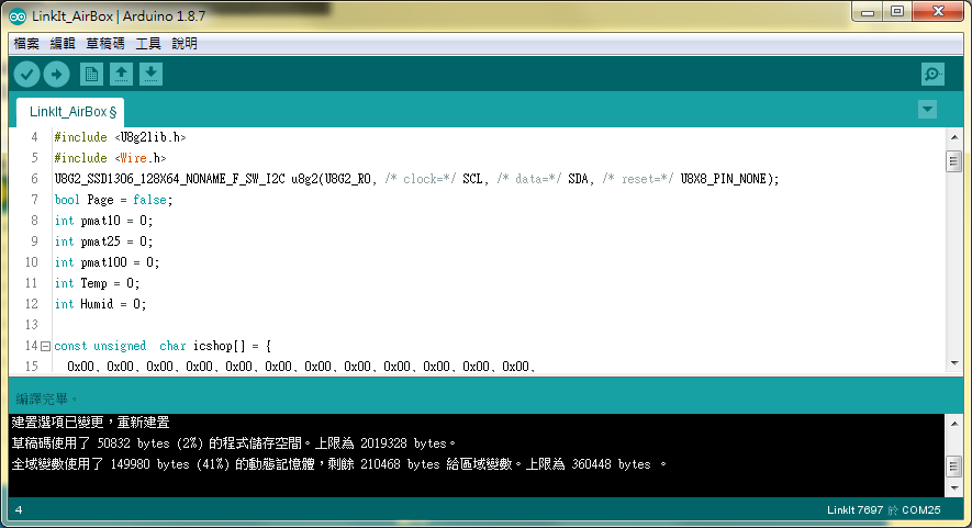 LinkIt7697 本身擁有連接Wi-Fi 的功能,我們將使用Arduino IDE 作為編寫程式與上傳的工具,透過程式將感測器資料讀取出來並顯示在OLED顯示螢幕上。