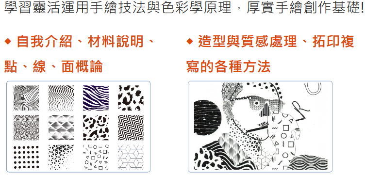 重視手繪實作的設計練習、學習用筆勾勒靈感的創作基礎。