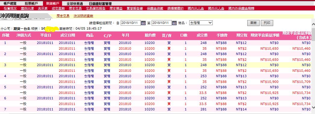 2018年在10.10美股大跌1000點的前一天10.9台指夜盤建立的期權空單部位創造單日222%的獲利、選擇權部位獲利760%