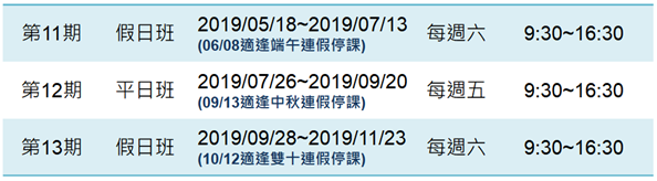 當您報名繳費之後,半年內可以跨期上課,目前可選擇的梯次如下: