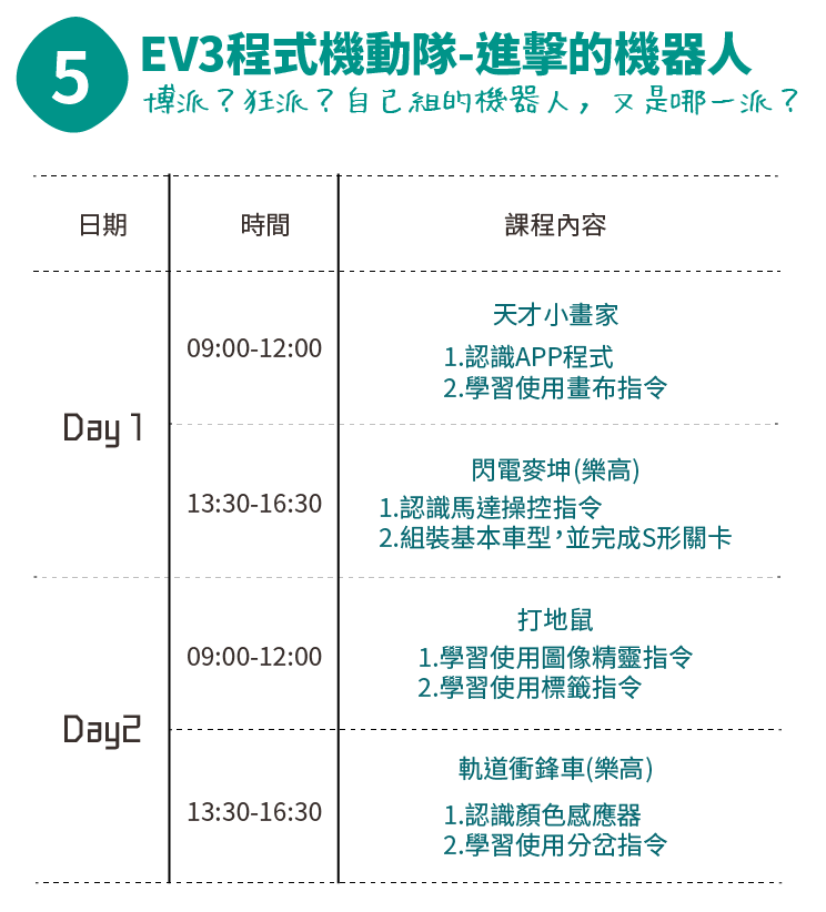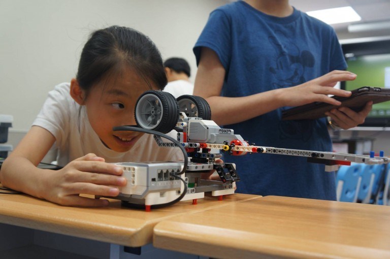讓孩子自己組裝樂高EV3機器人培養機械原理,並藉由APP INVENTOR2撰寫程式,創造一個能按孩子指令行動的機器人,發覺LEGO結合程式的樂趣!笑聲不斷的上課教室,是我們的日常~