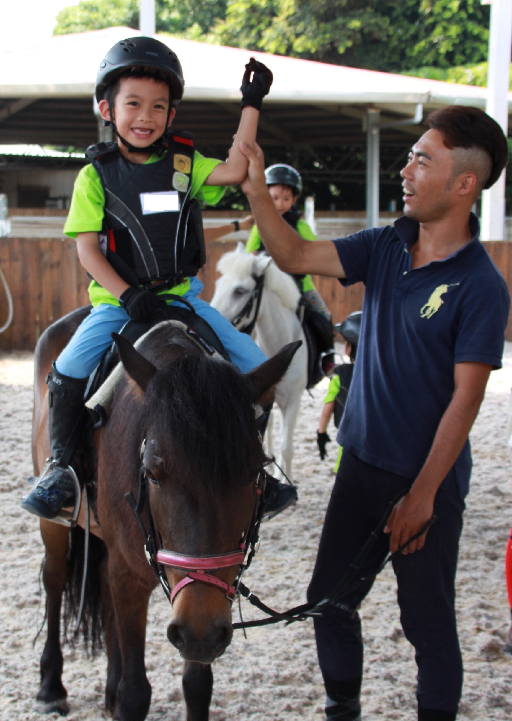 課程的設計,每天都會安排二個騎乘時段,上午、下午各60分鐘,在鬆軟的沙地上騎乘,加上穿戴齊全的安全裝備,讓孩子循序漸進、充分練習「馬背上的技術」。在這三天中,我們也讓孩子體驗「馬背下的功夫」,也就是馬廄實習,實地了解馬兒的習性與照顧方式。另外,製作和馬匹有關的美勞作品,成為獨一無二的冬令營紀念品,這都是我們能為孩子所做的。