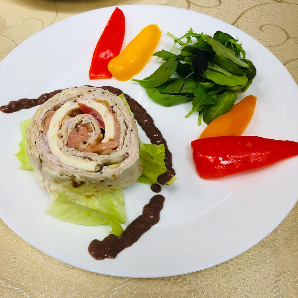第一道:鮭魚愛吃鮮蔬可可醬