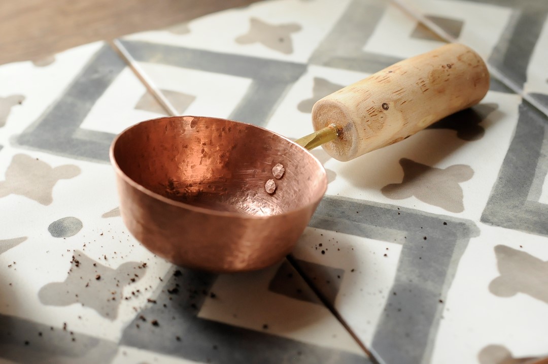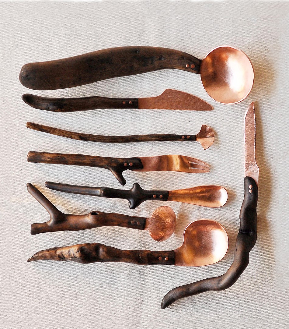 相對於其他金屬,紅銅獨有的溫暖光澤,以及隨著時光流逝產生變化的特性,讓它擁有似古董般的特殊經典質感,紅銅柔軟的延展性,適合鍛敲成叉子、湯匙、奶油抹刀等食器。